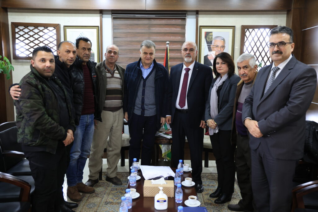 رام الله- التقى اليوم شاهر سعد الأمين العام لاتحاد نقابات عمال فلسطين ووفد نقابي من النقابة العامة للعاملين في الزراعة زير الزراعة البروفيسور رزق سليميّة، حيث تم مباركته باستلامه، كوزير ووضع آلية للتعاون بين النقابة والوزارة النقابة العامة للعاملين في الزراعة,