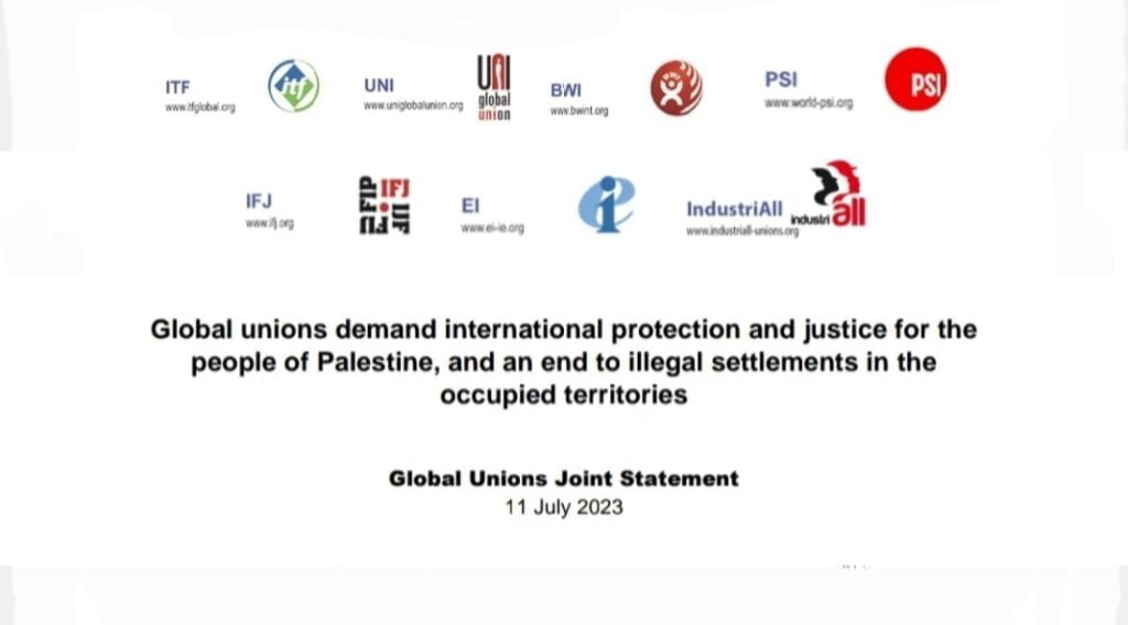 واعتبر البيان عام 2023م الذي لم تطوي كامل أيامه بعد، الأكثر دموية منذ عام 2005م، كما أدان مجلس النقابات العالمية في بيانه استخدام حكومة دولة الاحتلال الإسرائيلي المتعمد للقوة المميتة دون مراعاة القيود التي يفرضها القانون الدولي حيال ذلك، انتهاكاً مدبراً وصارخاً للقانون الدولي، بما في ذلك ميثاق الأمم المتحدة، ويظهر عدم نية دولة الاحتلال لإدامة احتلالها العسكري، وبالتالي قتل أي أمل في السلام الدائم والعدالة بين فلسطين و(إسرائيل)، الأمر الذي يتطلب ضغطاً دولياً قوياً وواضحاً من جميع المؤسسات العالمية، بما في ذلك الحركة العمالية العالمية على دولة الاحتلال الإسرائيلي لإنهاء احتلالها.
