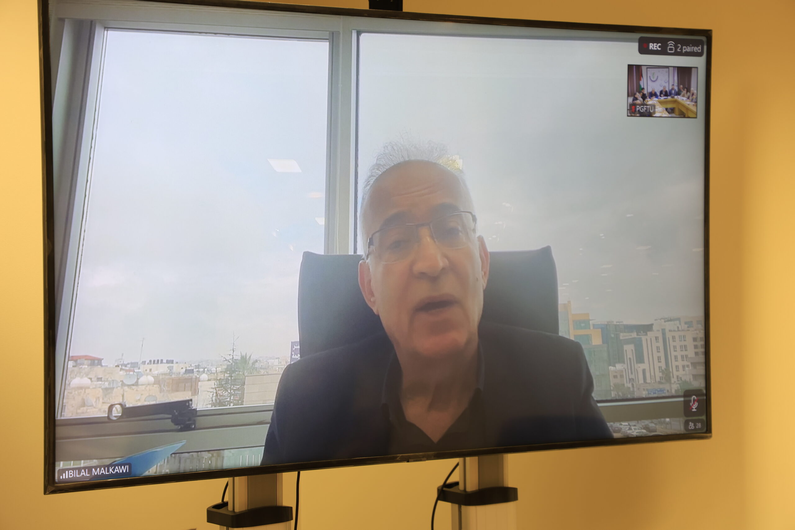 وقال وليد البايض مدير عام الإدارة العامة لعلاقات العمل متحدثا باسم وزير العمل د. إيناس العطاري، اننا نعلم الظروف التي نعانيها من الاحتلال وظروف الابادة الجماعية، وتقسيم الوطن الفلسطيني والهمجى، التي يتعرض لها الشعب الفلسطيني بمحافظة الضفة الغربية، ونرسل رسالة للمحتل من اننا حريصون على بناء مؤسساتنا الوطنية من خلال قطاع العمل التي قدمت الكثير وقدمت التضحيات ليبقى قطاع العمال والنقابي قطاع متماسك.