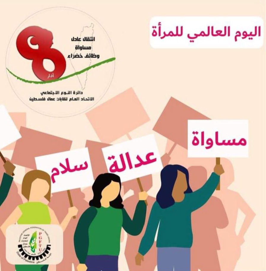 يتقدم الإتحاد العام لنقابات عمال فلسطين بكل الاحترام بمناسبة “يوم المرأة العالمي للمرأة الفلسطينية ” التي مثلت نموذجًا حيًا يحاكي نضالات وتضحيات وعطاءات المرأة التي ليس لها حدود، إذ مثّلت نموذجًا معقدًا في بنيته المتينة والتي انطلقت منذ اندلاع الثوره الفلسطينية وكانت المراه الفلسطينية جنبا الى جنب مع اخوتها بالنضال الوطنيّ الفلسطيني مقاتله وعامله وصاحبه قلم وفدائية وصحفية ووجدت في المصانع واماكن العمل في كل الميادين والمعارك وصمدت بالأرض كمزارعة تروي بعرقها تراب الوطن الذي زادها عنفوانًا وعزيمة.