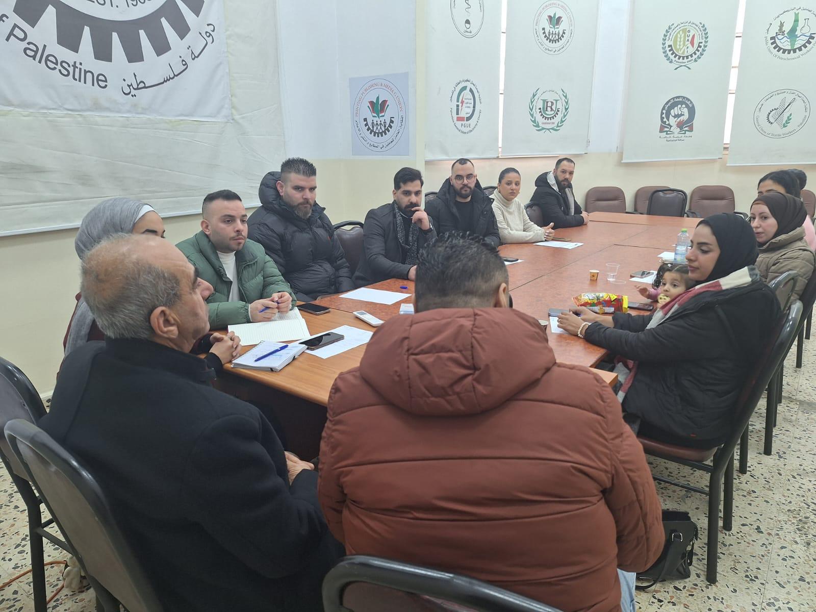 نابلس- عقدت دائرة الشباب في اتحاد العام لنقابات عمال فلسطين اجتماعها الدوري الرابع بحضور أمين سر مجلس نابلس عبد الكريم دويكات، و رئيس دائرة الشباب المركزية عادل عبدو، حيث تم خلال الاجتماع عرض ومناقشة خطة الاستراتيجية لشباب عام 2026، إلى جانب استعراض الأنشطة والبرامج القادمة للدائرة.