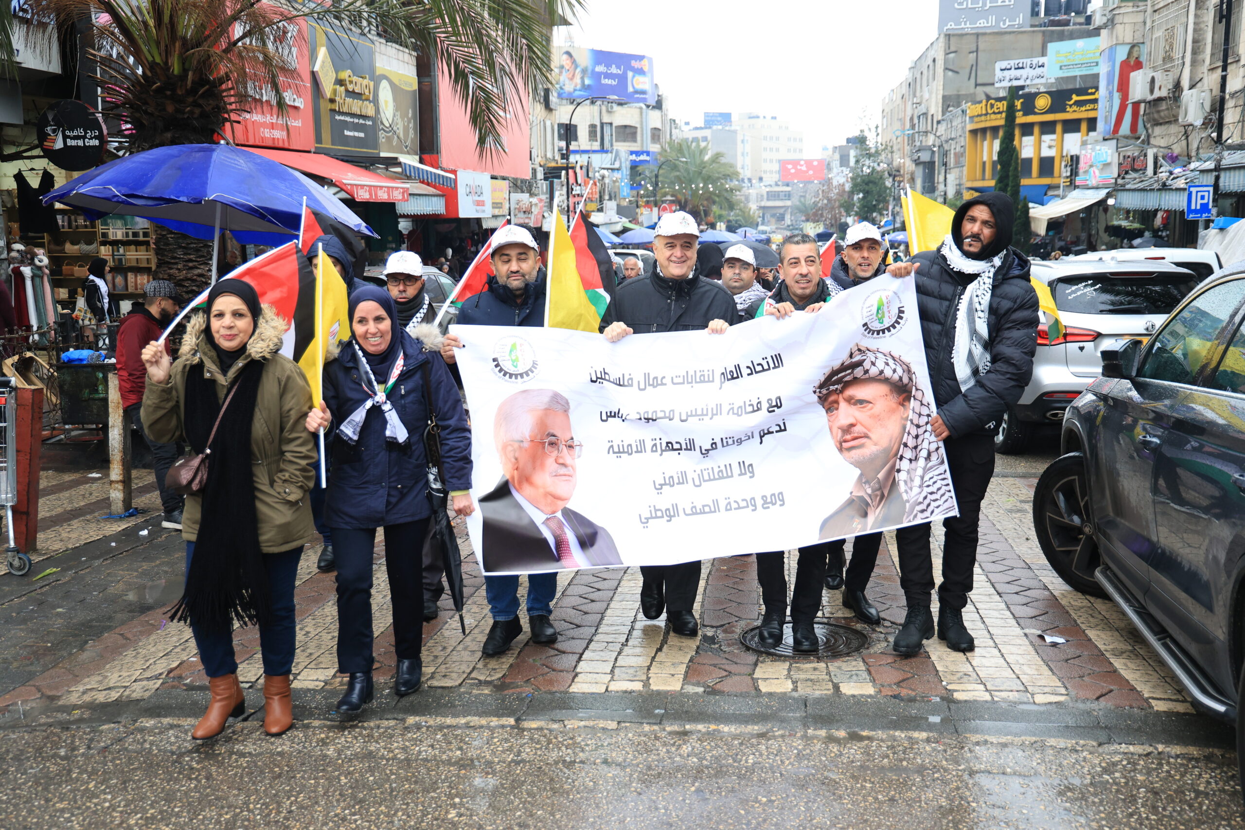 رام الله- شاركت قيادة الاتحاد العام لنقابات عمال فلسطين وعلى رأسها الأمين العام شاهر سعد، وعدد من أعضاء الأمانة العامة، وأمناء سر الفروع ورؤساء النقابات، والدوائر اليوم الثلاثاء 31/12/2024 بإحياء ذكرى إنطلاقة الثورة الفلسطينية (60) من قلب محافظة رام الله والبيرة بمشاركة جماهيرية واسعة .