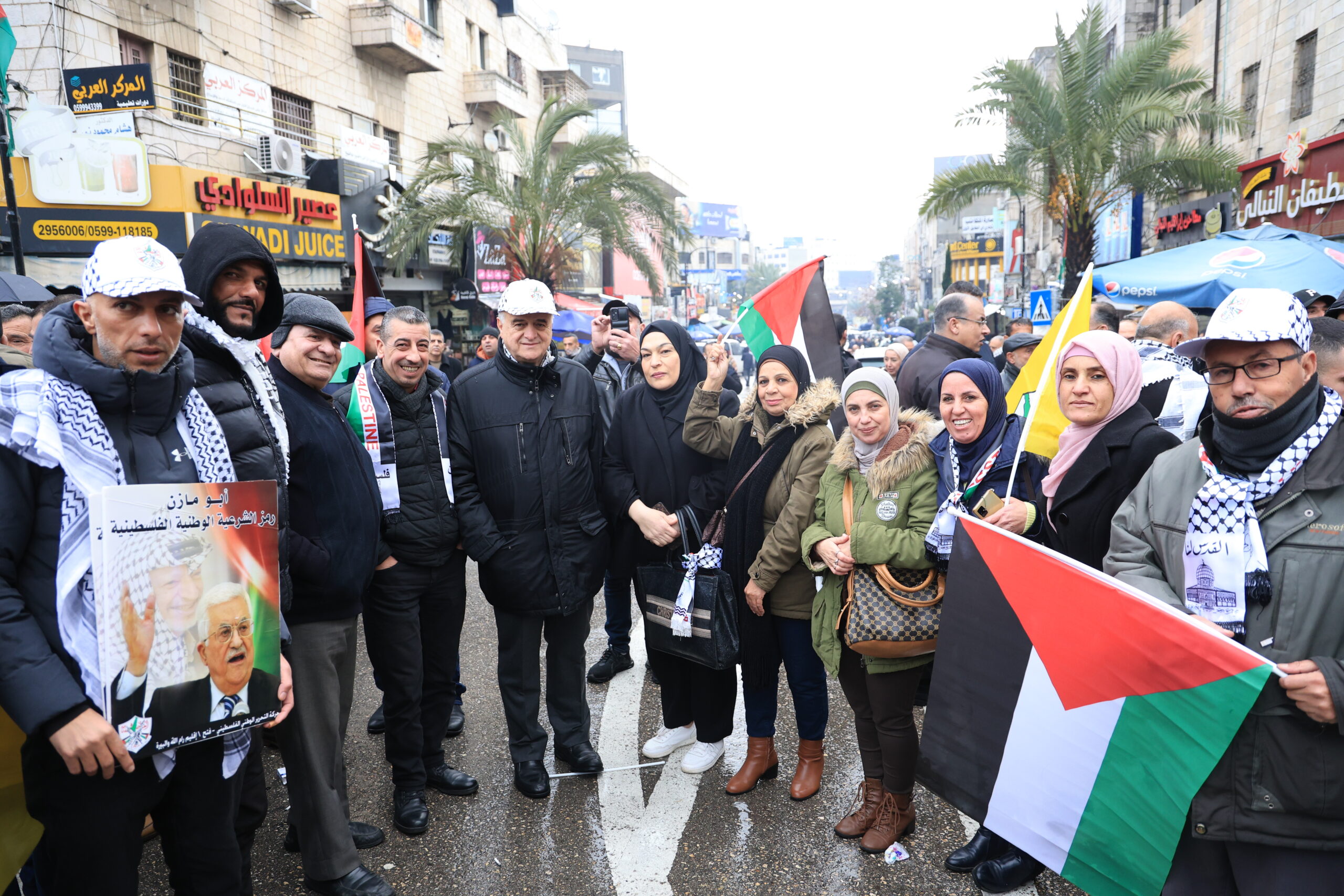 وقال الأمين العام للاتحاد العام لنقابات عمال فلسطين شاهر سعد أن حركة فتح يشهد لها العالم أجمع بما قدمته عبر تاريخ النضال للشعب الفلسطيني وما زالت تقدم عطاءها الدائم للحفاظ على وحدة الشعب الفلسطيني والذهاب به نحو تحقيق نقطة تحول تاريخية في مسيرة النضال الفلسطيني، وكانت ولا تزال رمزا للوحدة الوطنية، والعنوان الأول للمشروع الوطني الفلسطيني، مستذكرا القادة المؤسسين الذين رسموا بدمائهم مسار الثورة، وفي مقدمتهم الشهيد القائد ياسر عرفات وإخوانه القادة أعضاء اللجنة المركزية الذين رفعوا راية فلسطين عاليا في وجه الاحتلال العنصري.