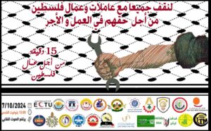 أخبار الاتحاد العام لنقابات عمال فلسطين في اليوم العالمي للعمل اللائق,,, تضامن عالمي وعربي واسع مع عمال فلسطين أكتوبر 7, 2024