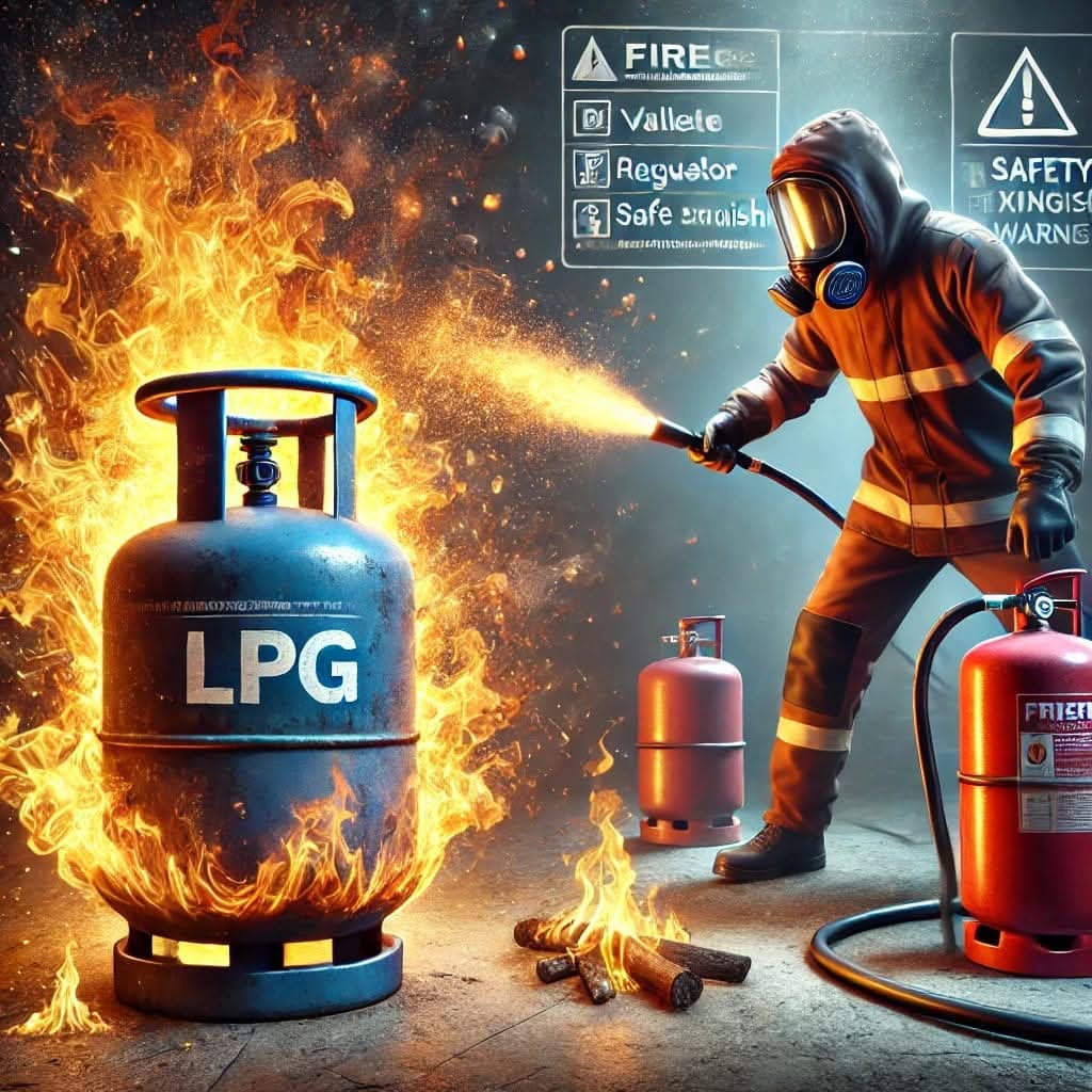 رش الأسطوانة باستخدام رذاذ ماء ناعم (Mist Spray) لتبريدها ومنع زيادة الضغط الداخلي الذي قد يؤدي إلى الانفجار.