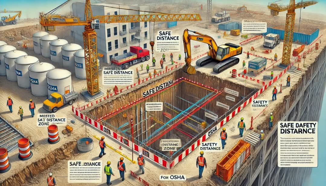 الــOSHA تضع معايير صارمة لضمان سلامة المعدات الثقيلة (مثل الرافعات أو الأوناش) عند العمل بالقرب من مناطق الحفر. والهدف هو حماية العمال ومنع انهيار الحفر نتيجة الأحمال الثقيلة أو سوء توزيع الوزن.