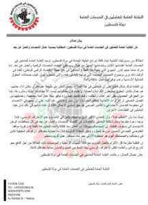 أخبار الاتحاد العام لنقابات عمال فلسطين بيان صادر عن النقابة العامة للعاملين في الخدمات العامة أكتوبر 12, 2025